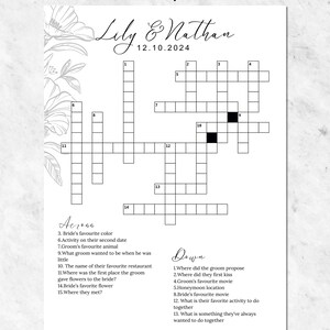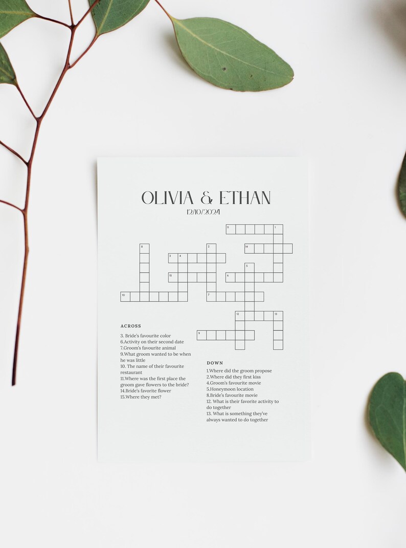 Personalized Wedding Crossword Puzzle Custom Wedding Activity Lawn