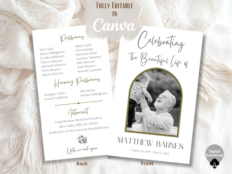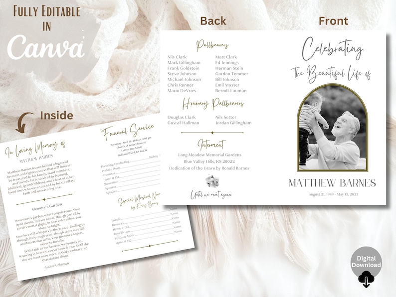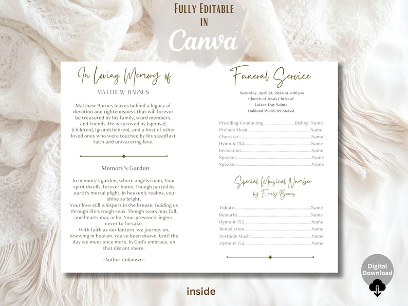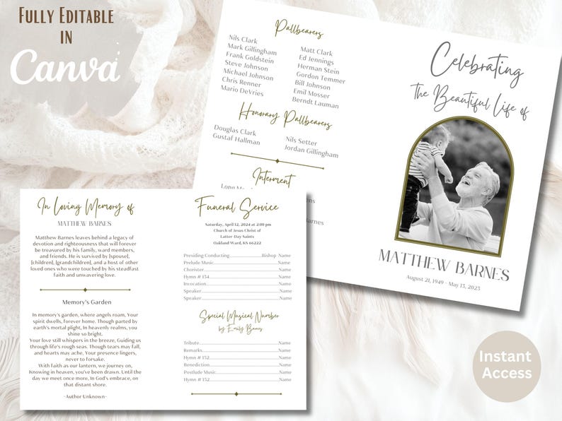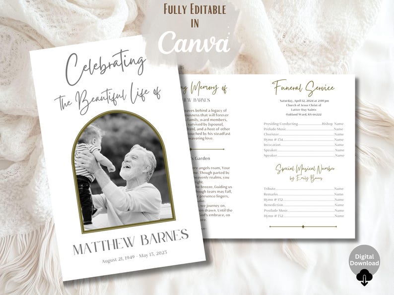LDS Funeral Program Template: Celebration of Life Canva Editable