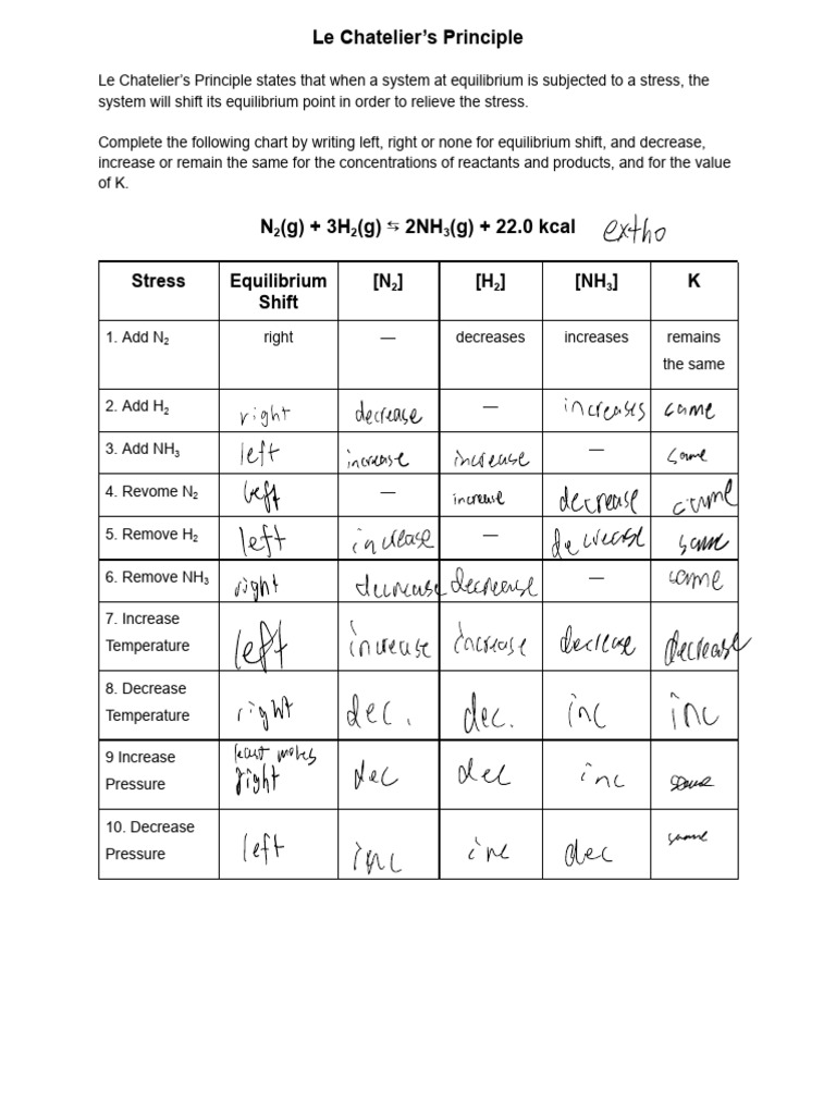 Le Chateliers Principle Worksheet With Answers prntbl