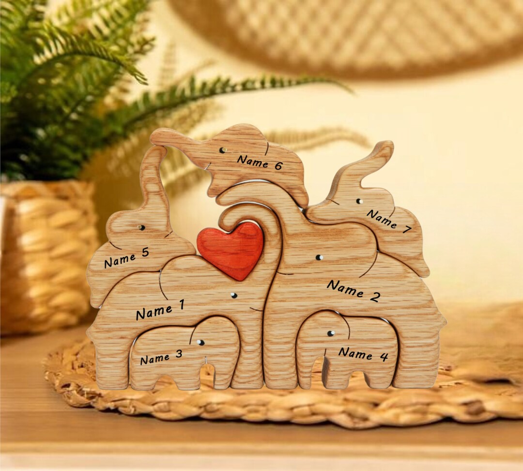 Puzzle Famille Éléphant en Bois Figurine Animale 7 Personnes Etsy France