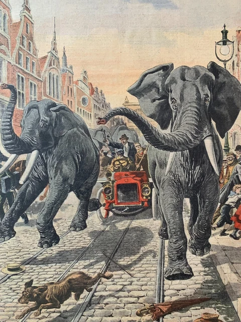 LE PETIT JOURNAL Une Chasse A L #39 elephant En Autonomibile 1908 EUR