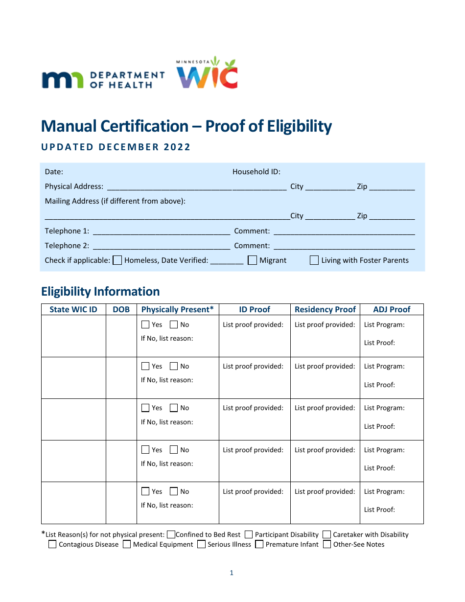Minnesota Manual Certification Proof of Eligibility Fill Out Sign