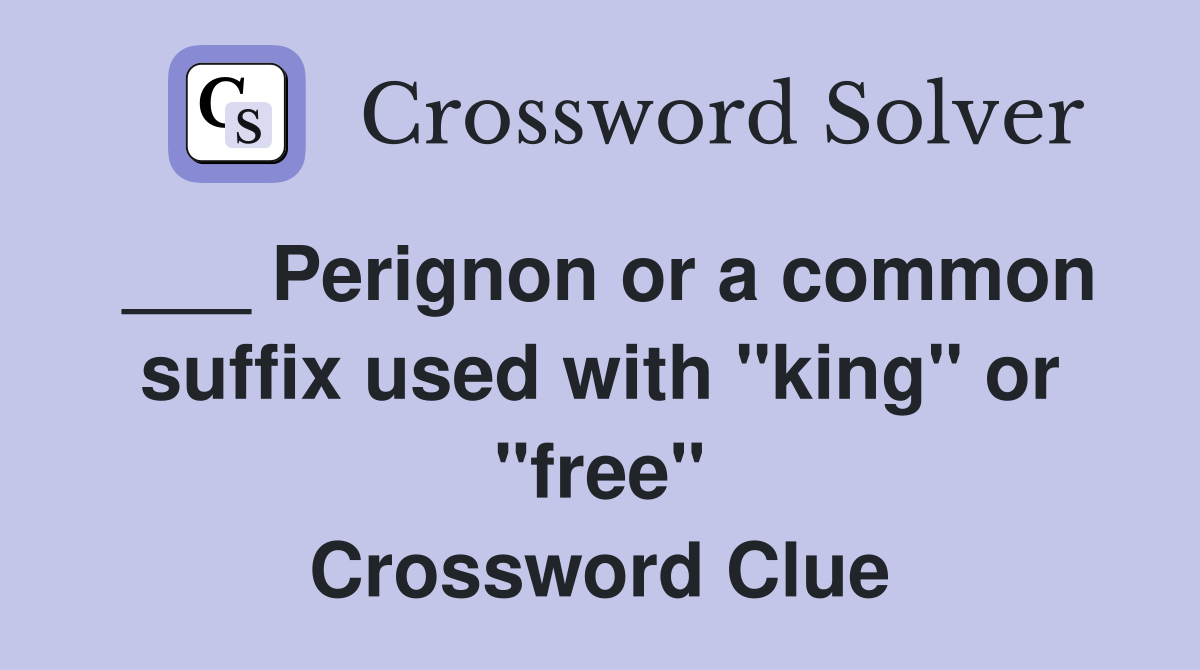 Perignon or a common suffix used with quot king quot or quot free quot Crossword Clue