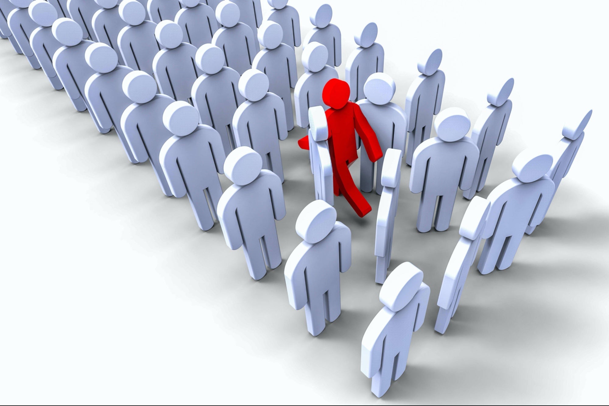 Premium Photo Red human figurine lead employees to walk forward