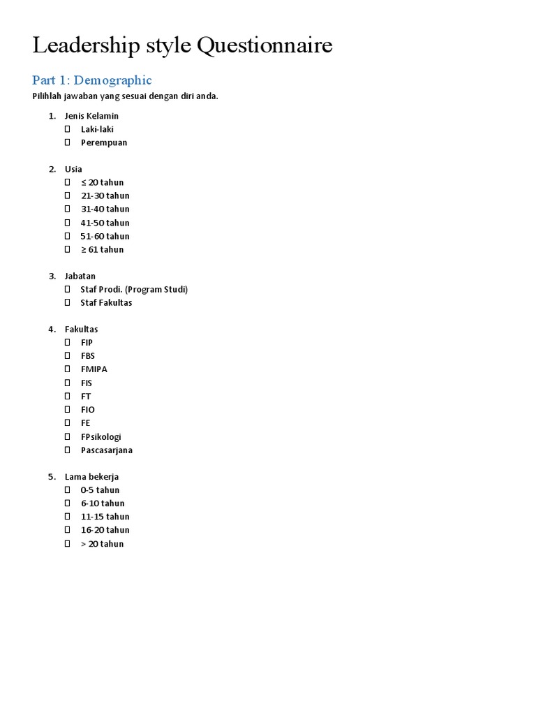 Leadership Styles Questionnaire For Employees at Don Maggie blog