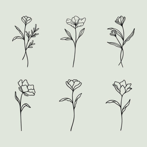 Flower Line Art Bundle 6 Elegant Wildflowers Botanical Floral