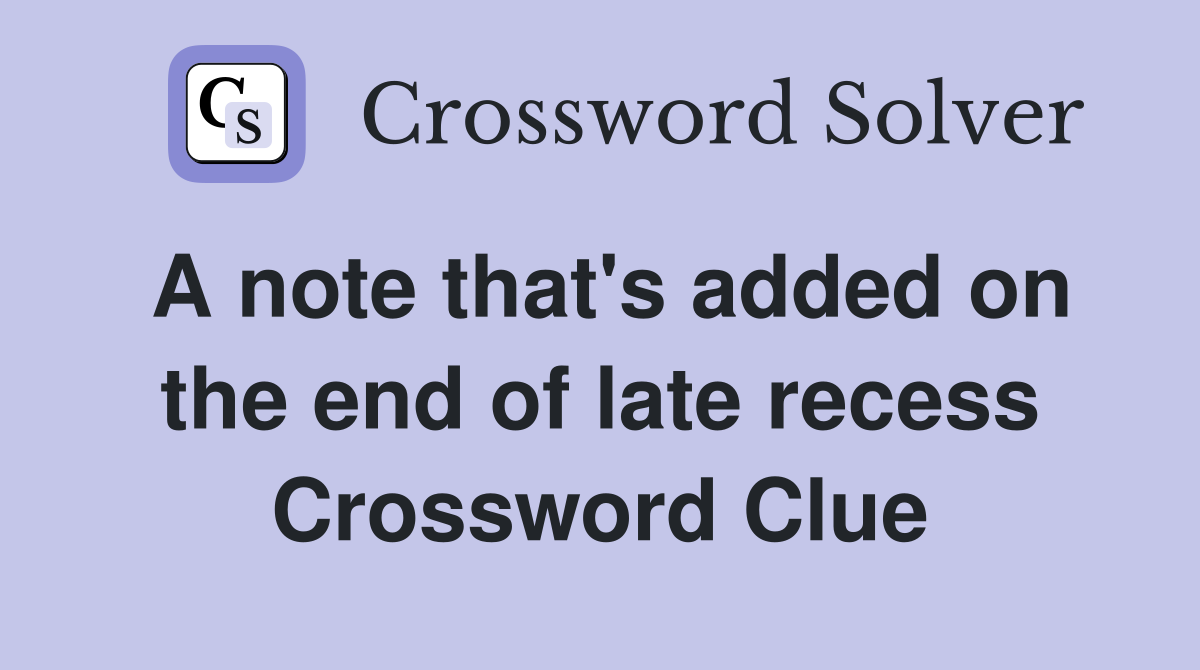 A note that s added on the end of late recess Crossword Clue Answers