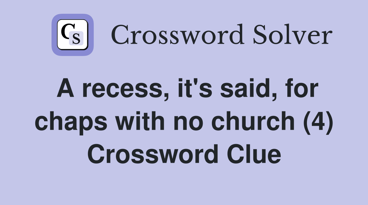 A recess it s said for chaps with no church (4) Crossword Clue