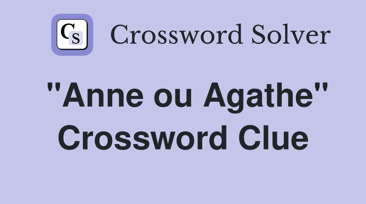 quot Anne ou Agathe quot Crossword Clue Answers Crossword Solver