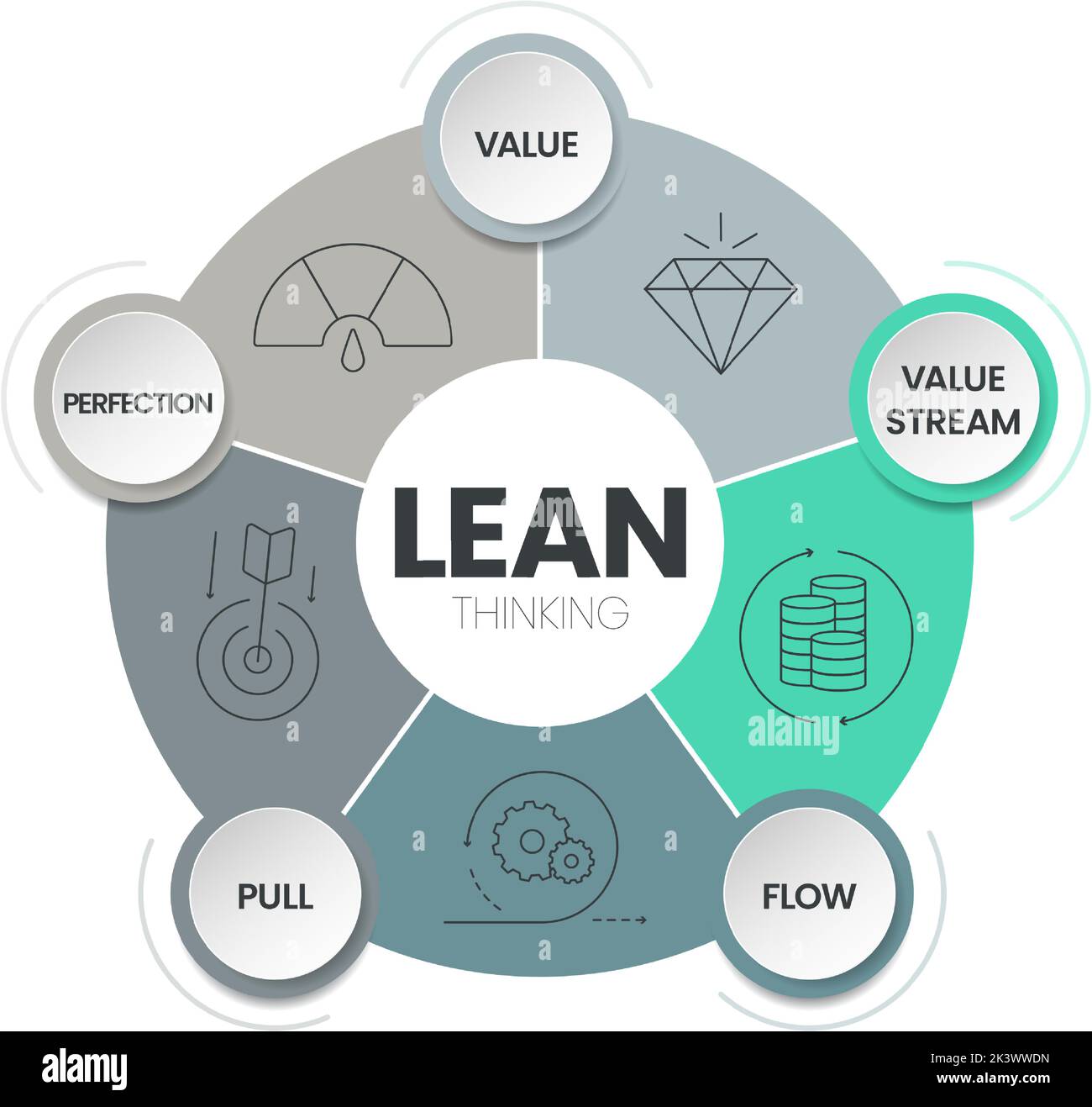 DIE Infografik Vorlage MIT Symbol für EIN LEAN Thinking Diagramm