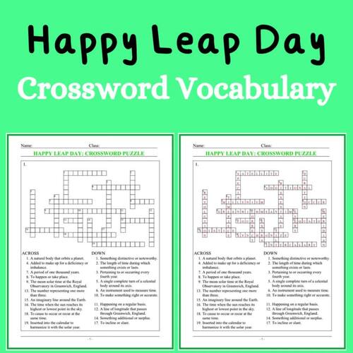 HAPPY LEAP YEAR ACTIVITY Fun Vocabulary Crossword Puzzle TPT