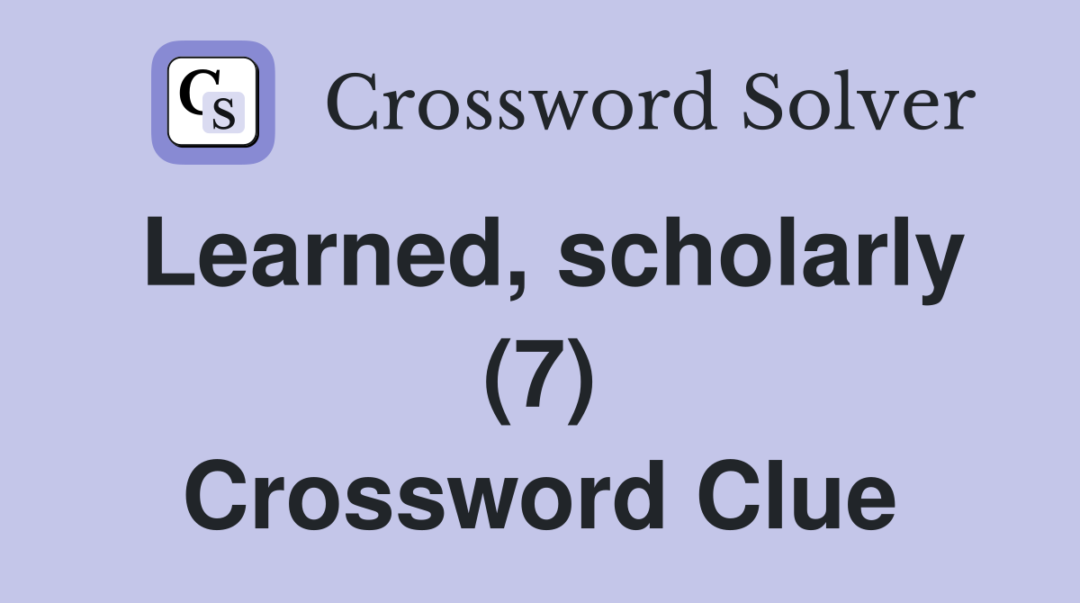 Learned scholarly (7) Crossword Clue Answers Crossword Solver
