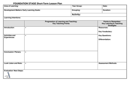 EYFS Lesson plan template by noaddedsugar UK Teaching Resources TES
