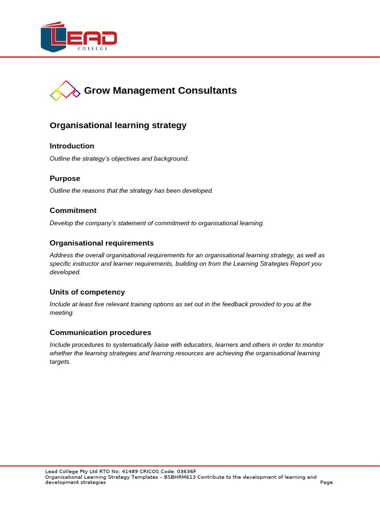 Organisational Learning Strategy Template docx 1 1 docx Grow
