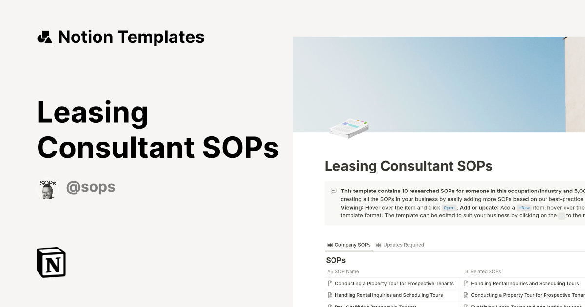 Leasing Consultant SOPs Template by SOPs Notion Marketplace