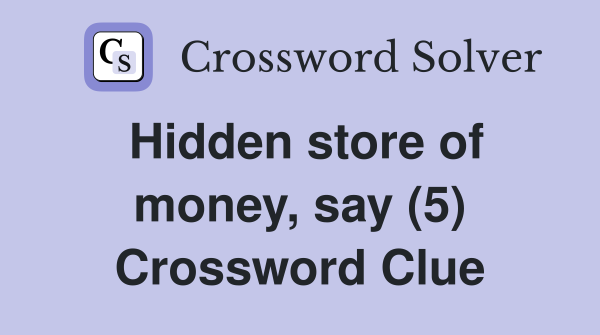 Hidden store of money say (5) Crossword Clue Answers Crossword Solver