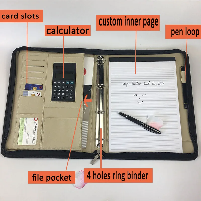 Hot Sale Office Pu Leather Certificate Folder A4 A5 Size Hard Cover