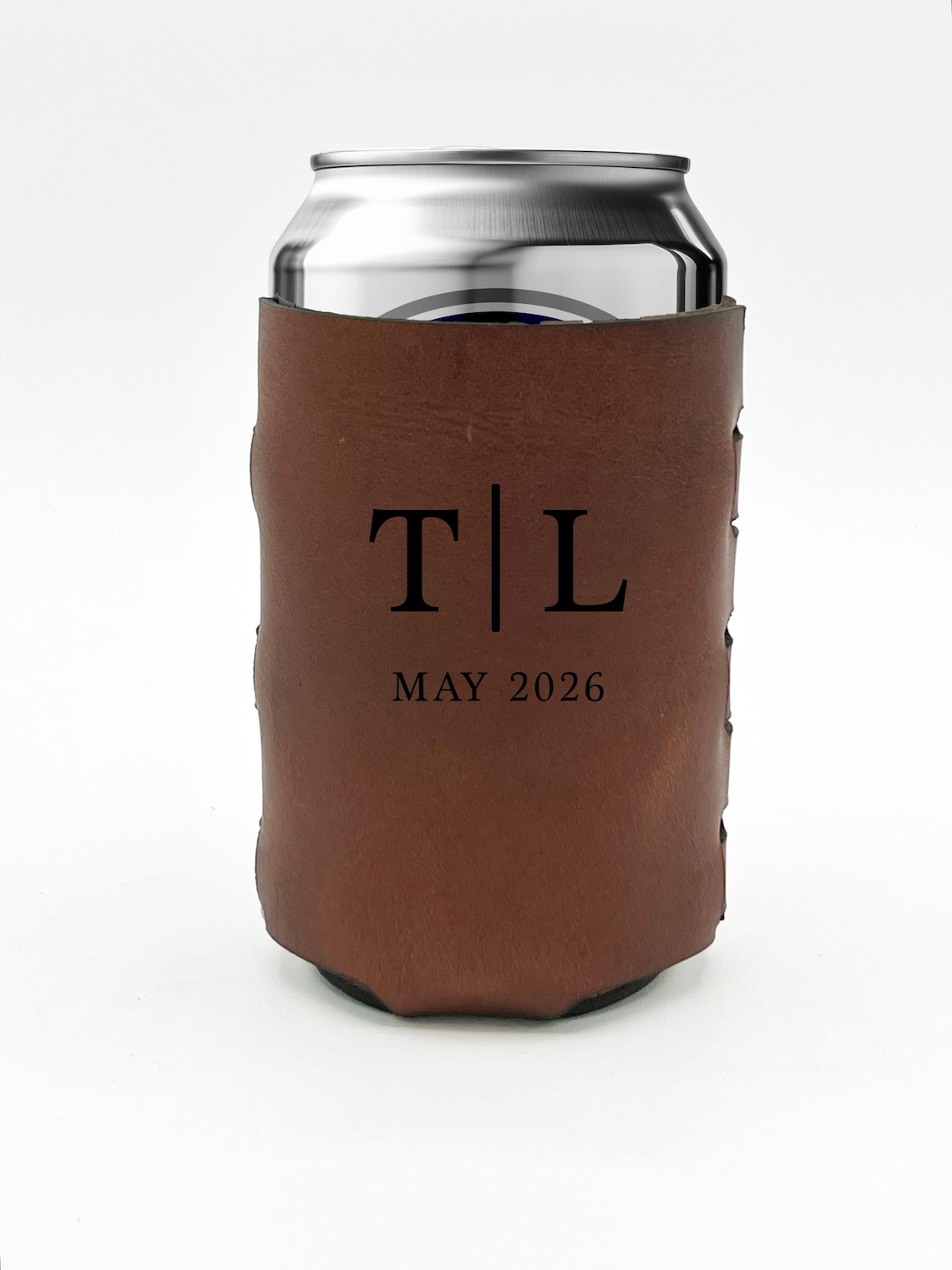 Personalized Leather Koozie for Beer or Seltzer Custom Engraved