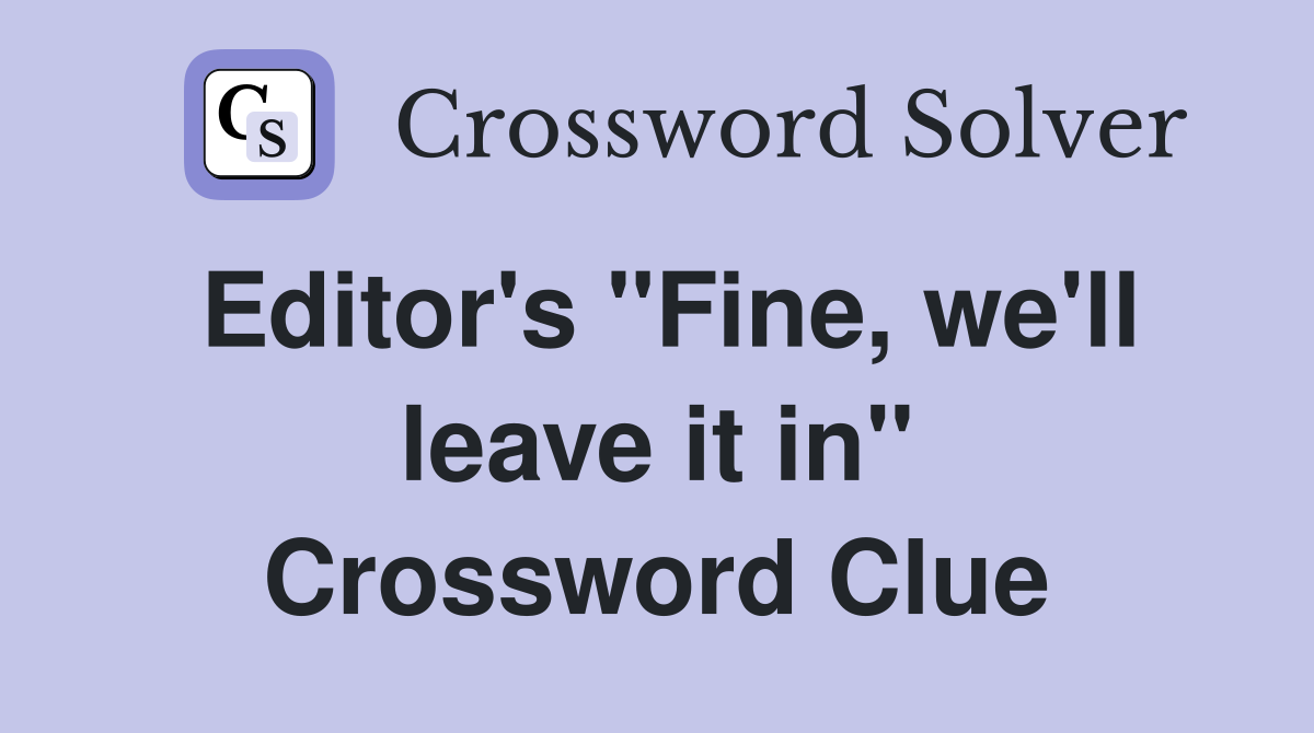 Editor #39 s quot Fine we #39 ll leave it in quot Crossword Clue Answers Crossword