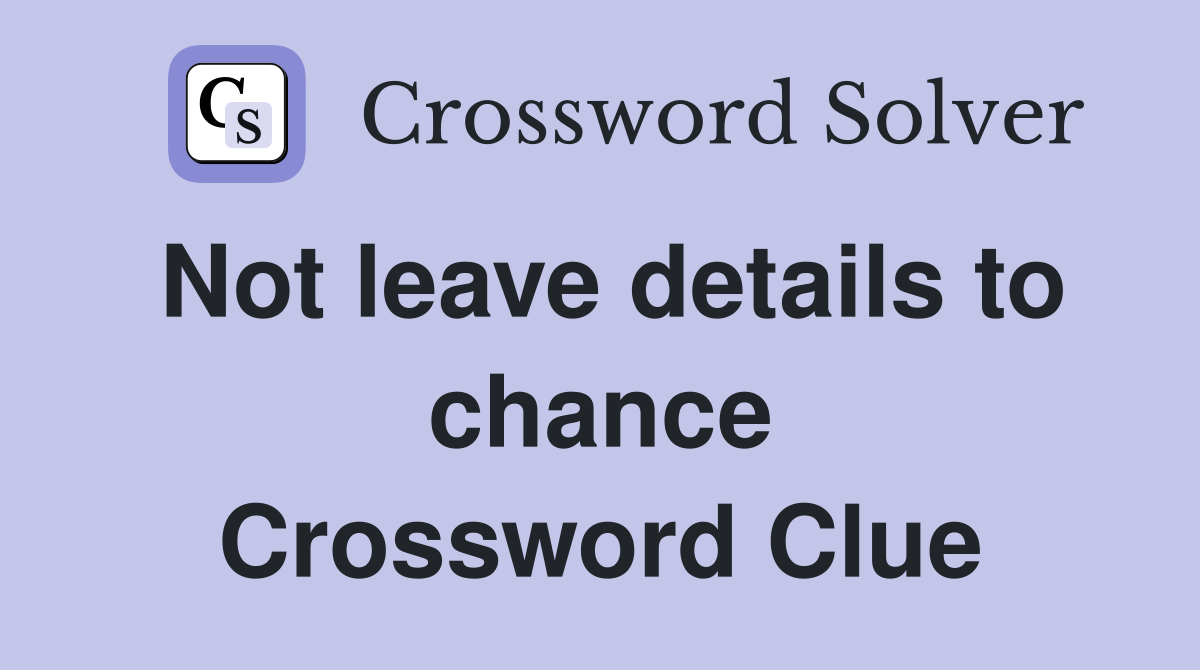 Not leave details to chance Crossword Clue Answers Crossword Solver