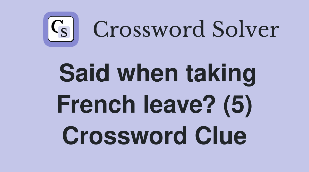 Said when taking French leave? (5) Crossword Clue Answers Crossword