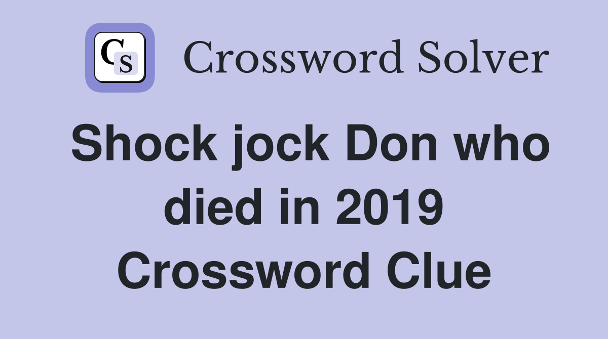 Shock jock Don who died in 2019 Crossword Clue Answers Crossword Solver