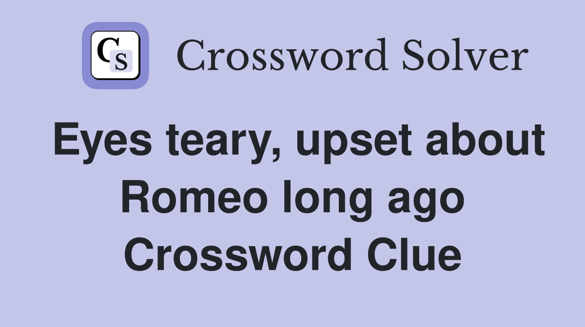 Eyes teary upset about Romeo long ago Crossword Clue Answers