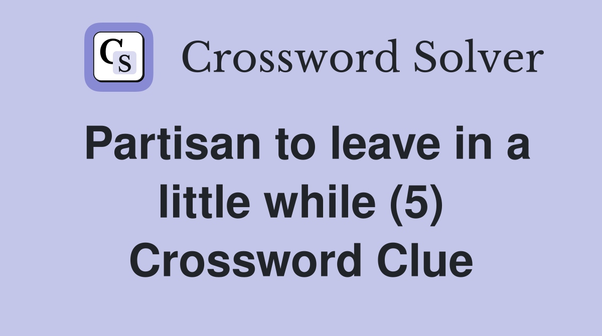 Partisan to leave in a little while (5) Crossword Clue Answers