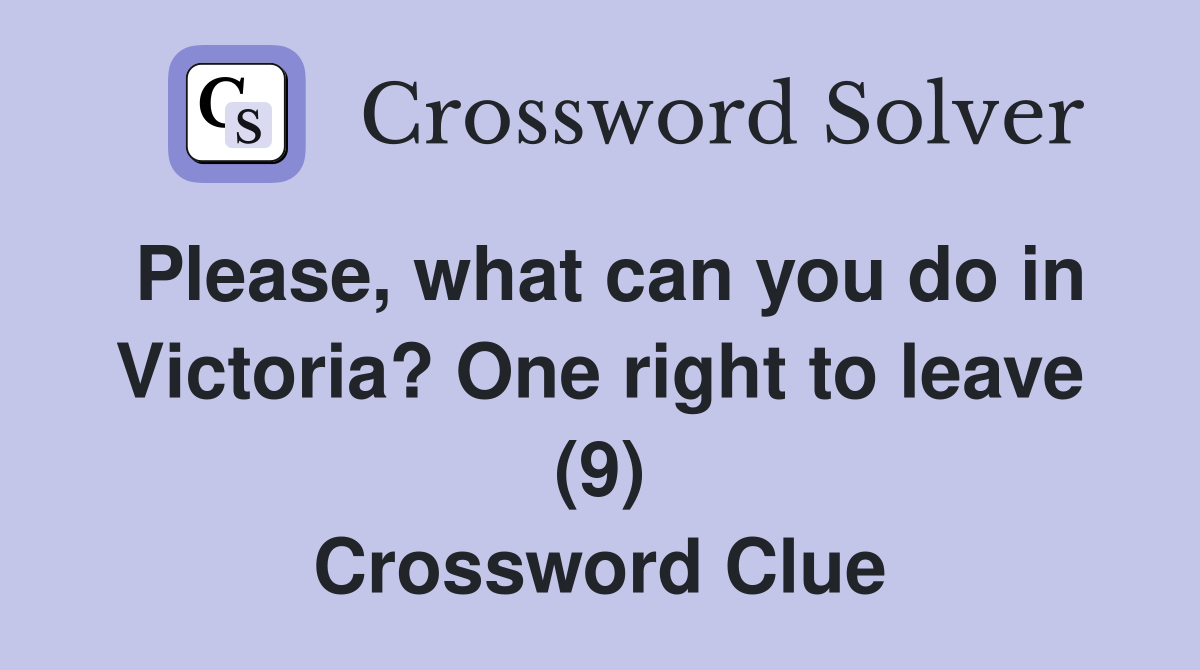 Please what can you do in Victoria? One right to leave (9) Crossword