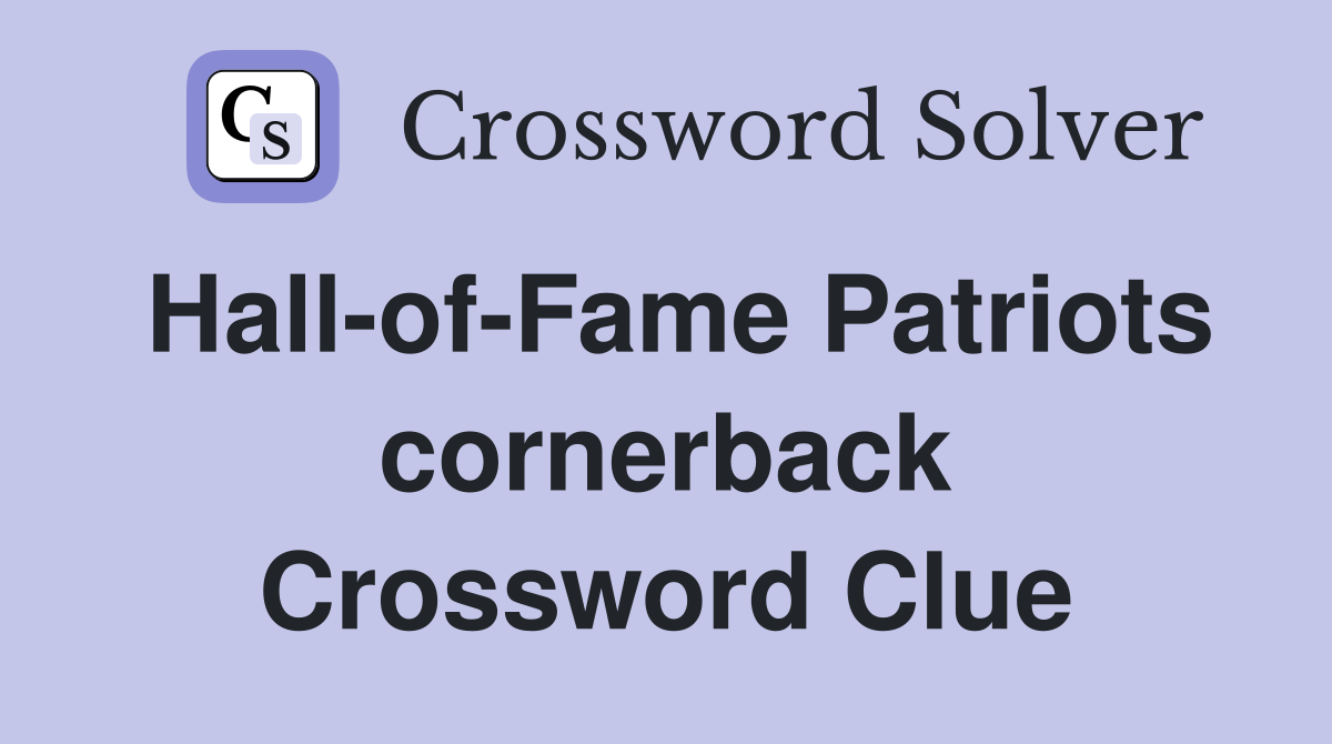 Hall of Fame Patriots cornerback Crossword Clue Answers Crossword