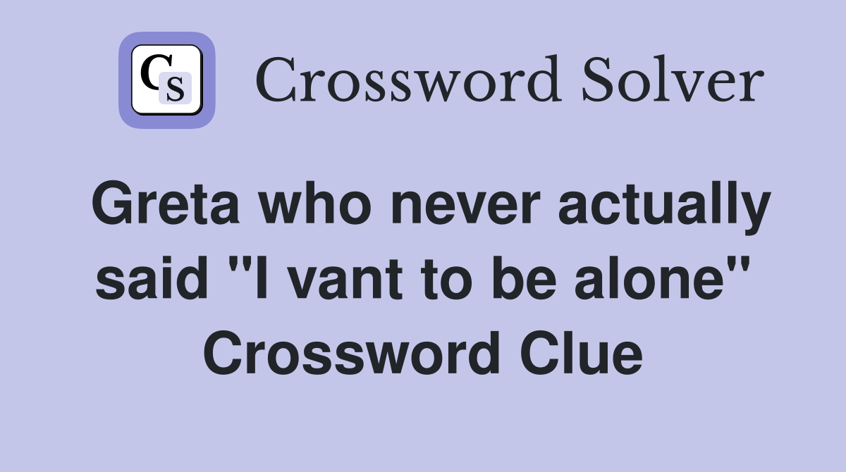 Greta who never actually said quot I vant to be alone quot Crossword Clue