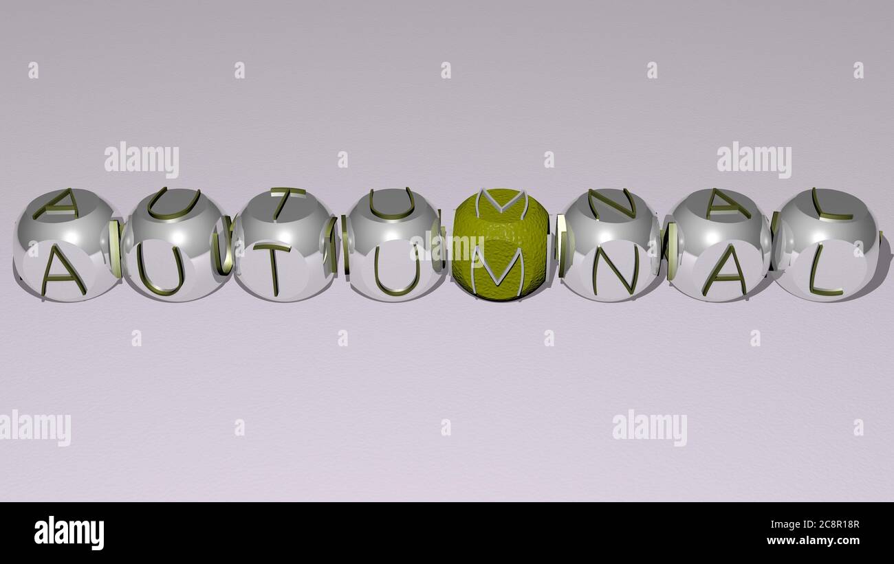 crosswords of autumnal arranged by cubic letters on a mirror floor
