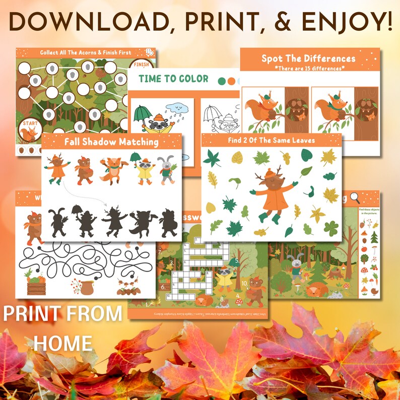 Fall Time Activities for Kids Shadow Match Spot the Difference Fun