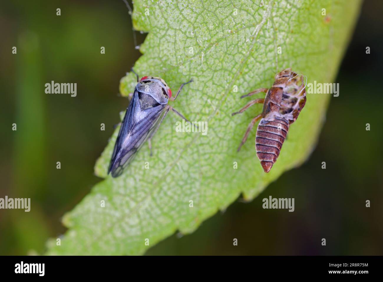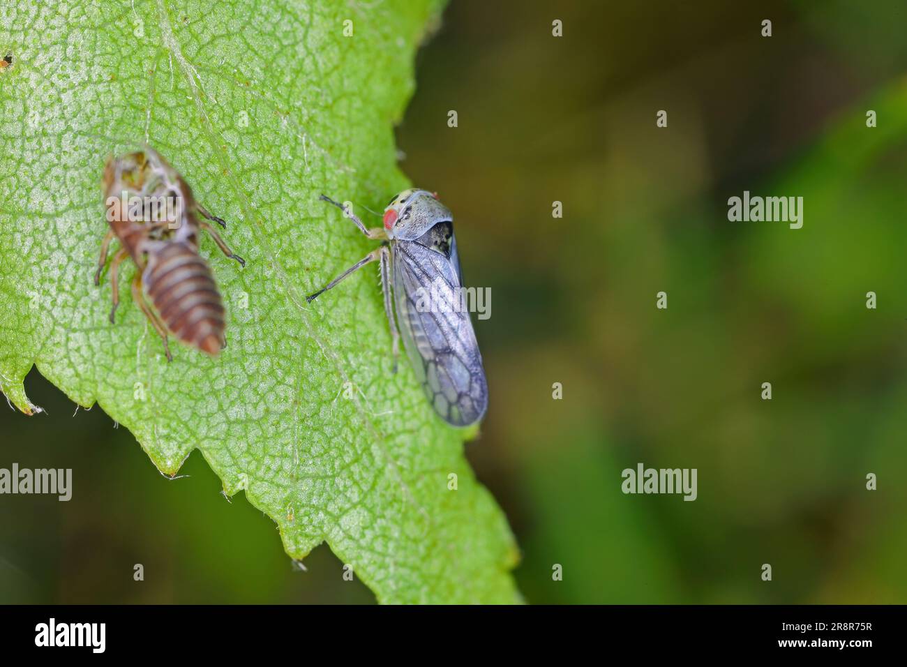 Leafhopper which developed on a birch leaf shortly after metamorphosis
