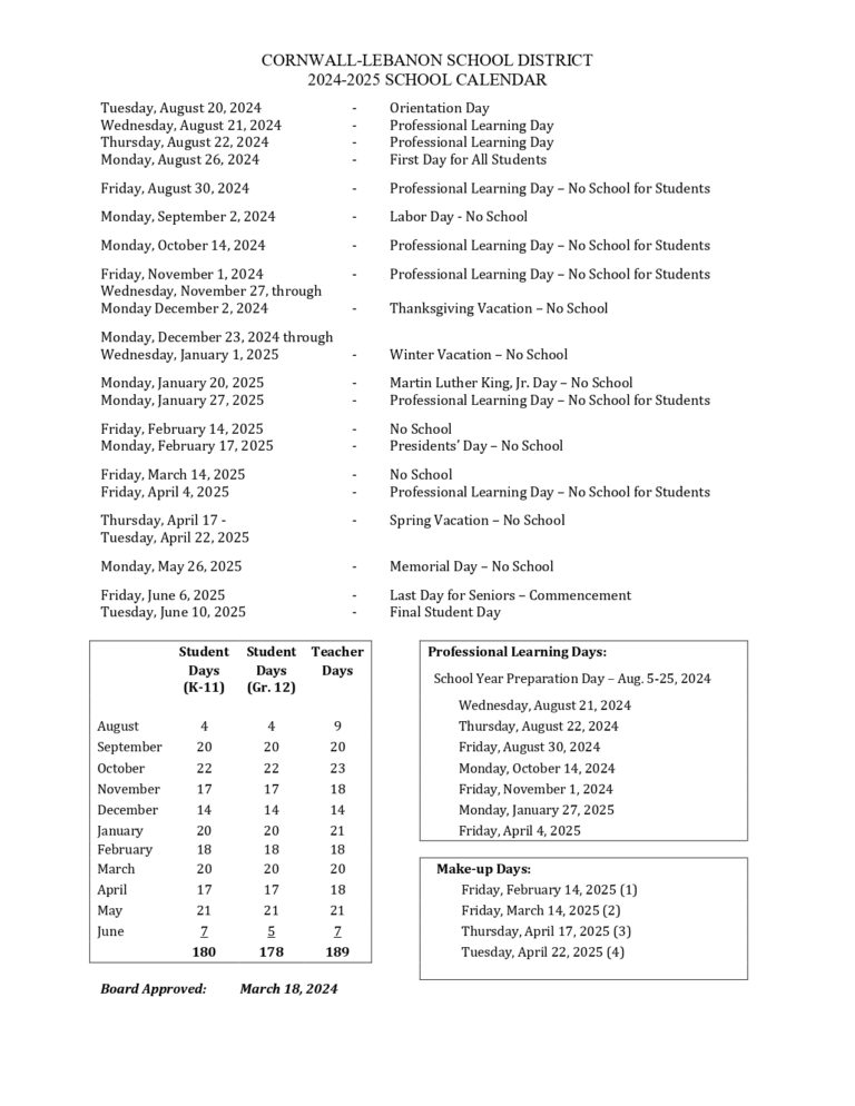 Cornwall Lebanon School Calendar 24 25 PDF revised EduCounty