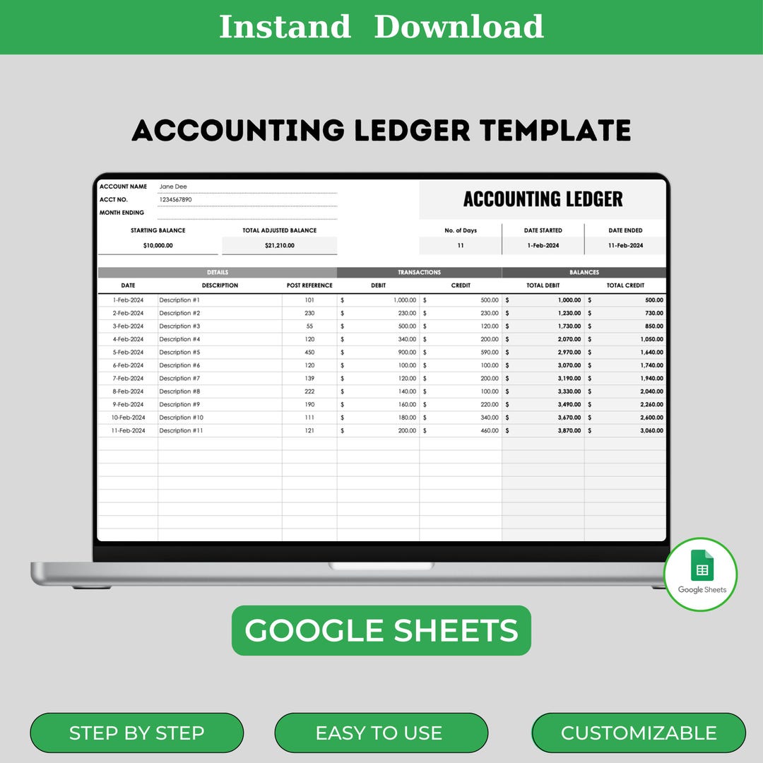 Accounting Ledger Template Google Sheets Digital Download Editable