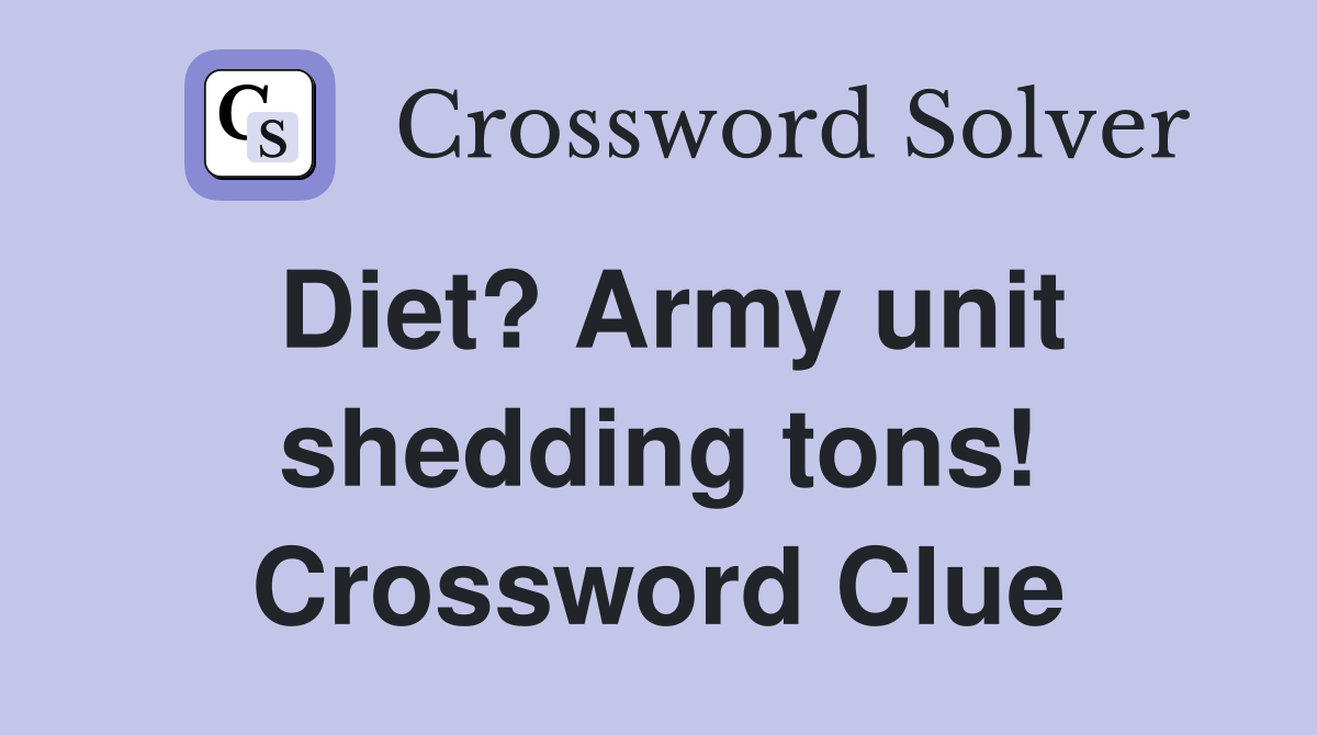 Diet? Army unit shedding tons Crossword Clue Answers Crossword Solver
