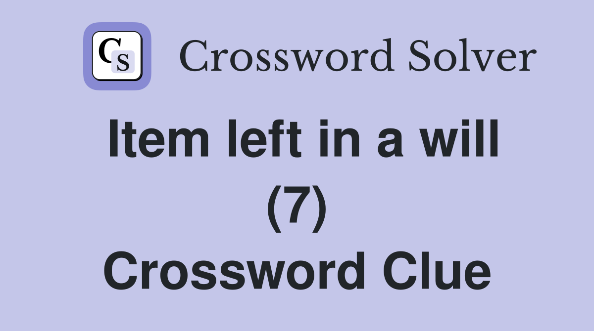 Item left in a will (7) Crossword Clue Answers Crossword Solver