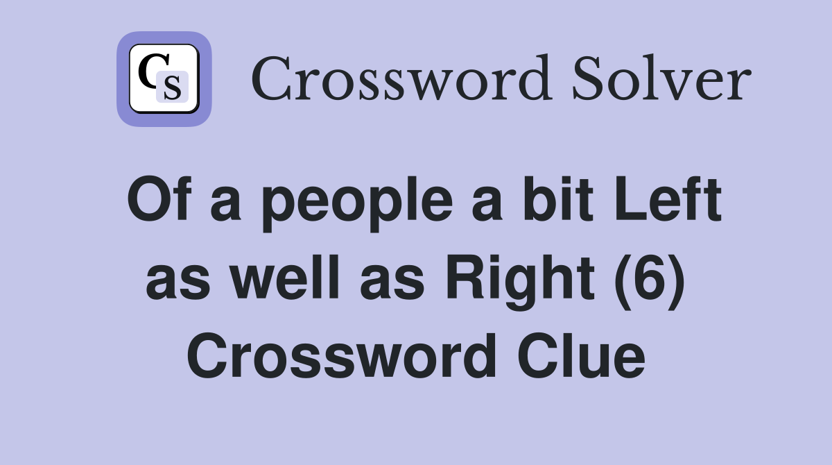 Of a people a bit Left as well as Right (6) Crossword Clue Answers