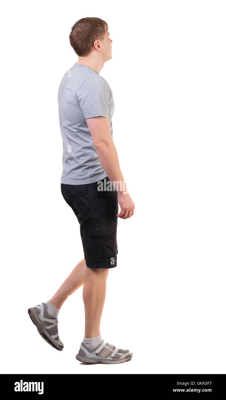 Back view of walking handsome man in shorts and sneakers Stock Photo