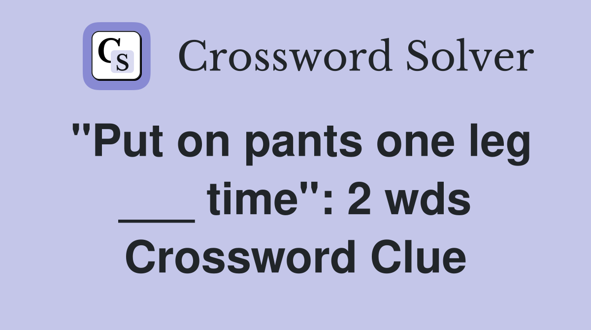 quot Put on pants one leg time quot : 2 wds Crossword Clue Answers