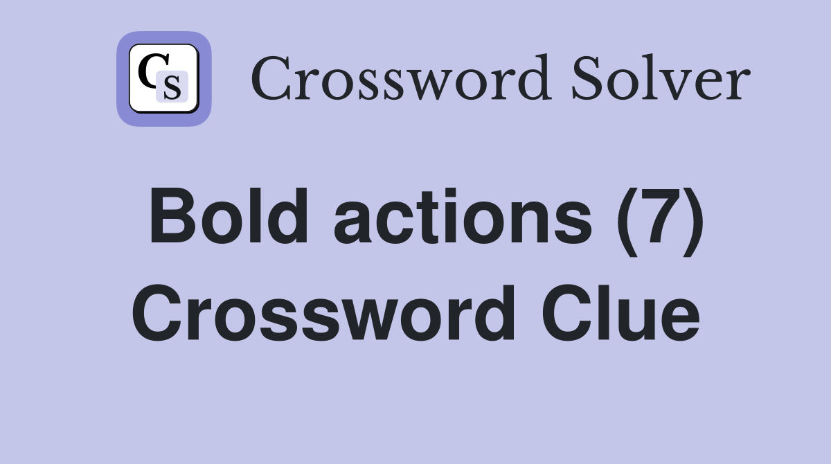 Bold actions (7) Crossword Clue Answers Crossword Solver