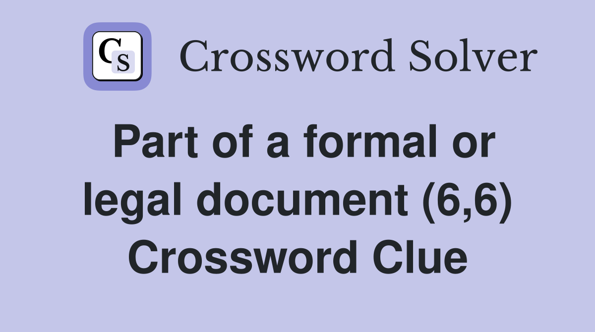 Part of a formal or legal document (6 6) Crossword Clue Answers