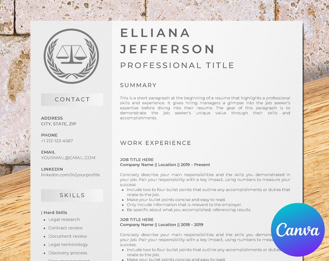 Legal Assistant Resume Template for Canva: Stand Out in the Legal Field