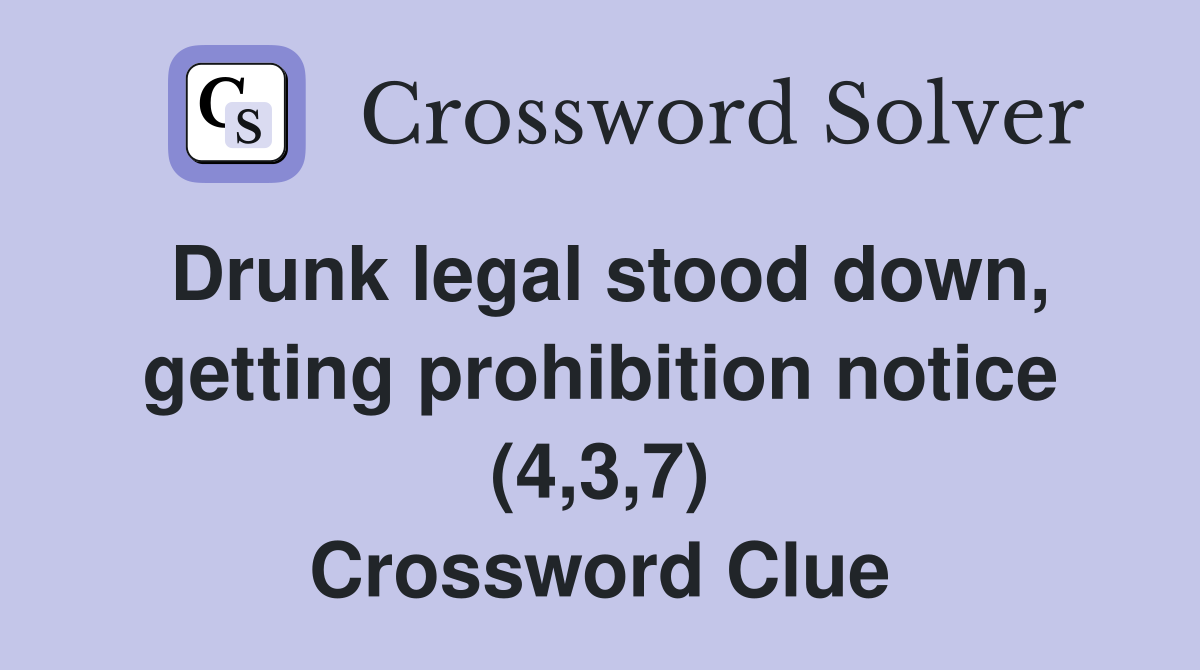 Drunk legal stood down getting prohibition notice (4 3 7) Crossword