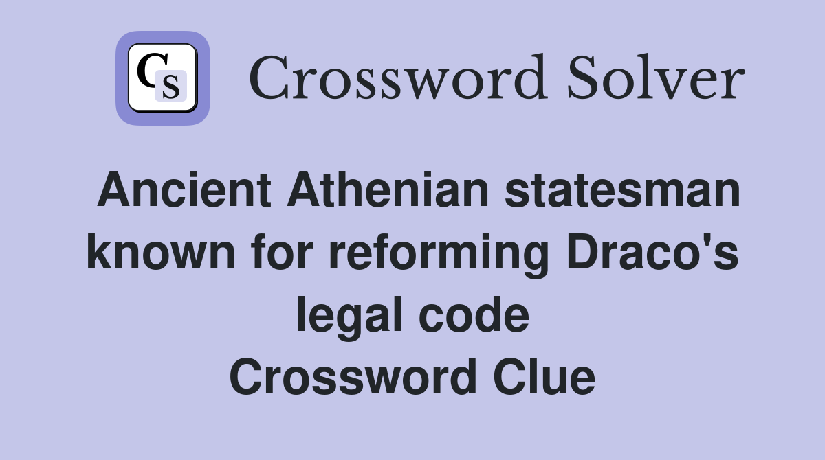 Ancient Athenian statesman known for reforming Draco #39 s legal code