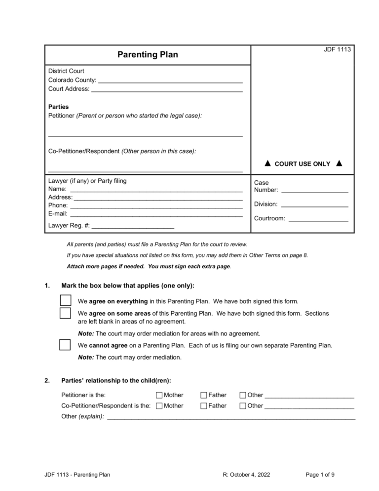 Parenting Plan Template Illinois
