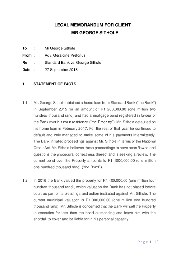 (DOC) LEGAL MEMORANDUM FOR CLIENT MR GEORGE SITHOLE