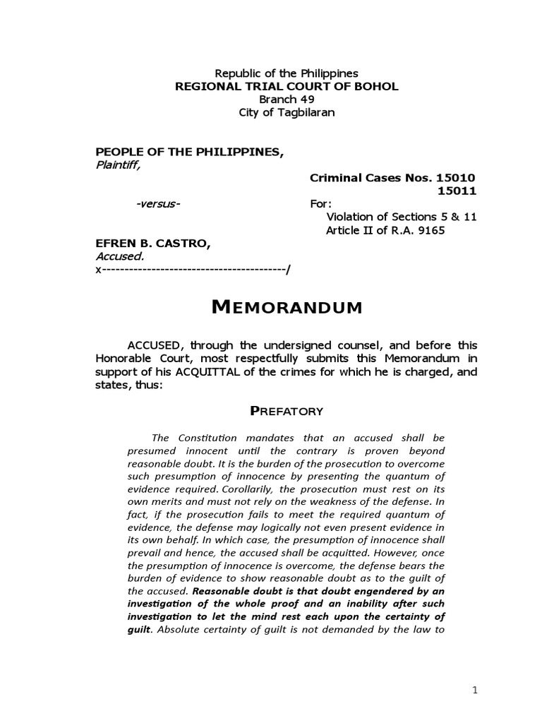 Memorandum Download Free PDF Presumption Of Innocence Burden Of