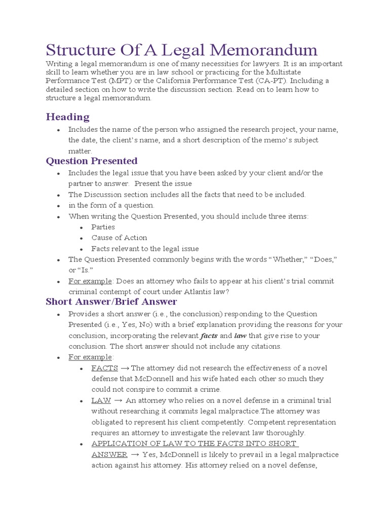 GUIDELINES On The Structure of A Legal Memorandum PDF Memorandum